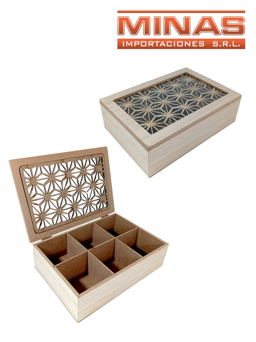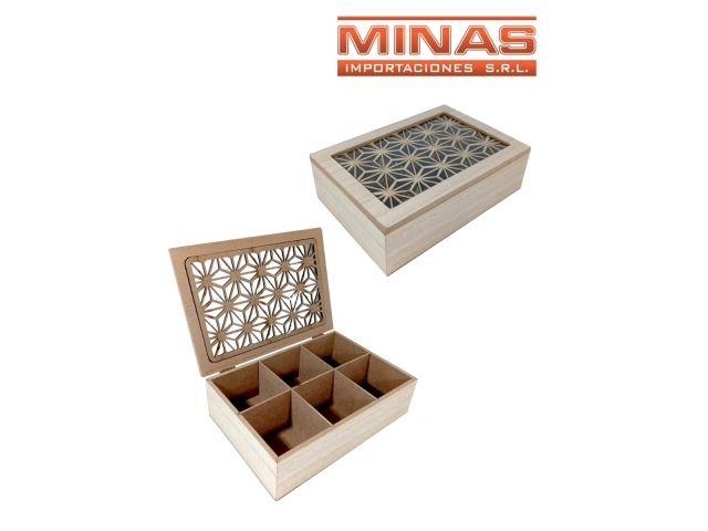 CAJA PORTA TE X 6 SEPARACIONES, 24 CM X 16 CM X 7 CM, TAPA BEIGE.