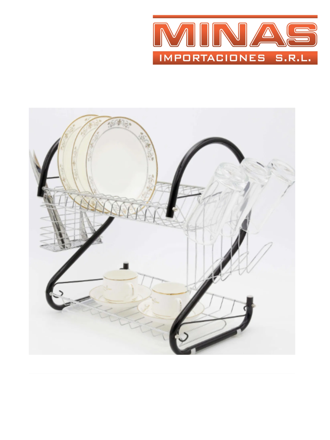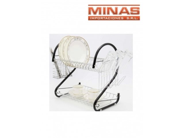 ESCURRIDOR DE ACERO INOXIDABLE Y NEGRO, 41 CM X 11 CM X 26 CM, 2 NIVELES CON BANDEJA.