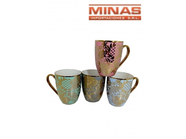 TAZA DE CERAMICA X 350 mI, DE COLOR CON DORADO.