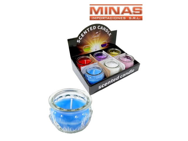 VELAS AROMATICAS X 6 UND, CON PORTAVELAS DE VIDRIO, 6 AROMAS, $ 65 C/U.