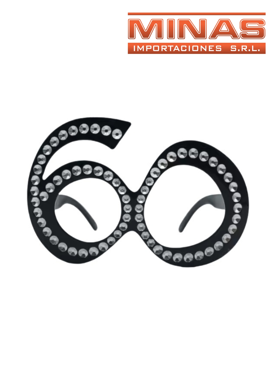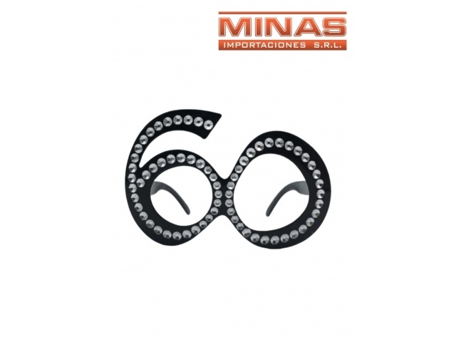 LENTES DE COTILLON ¨60 ¨, NEGRO CON BRILLOS.