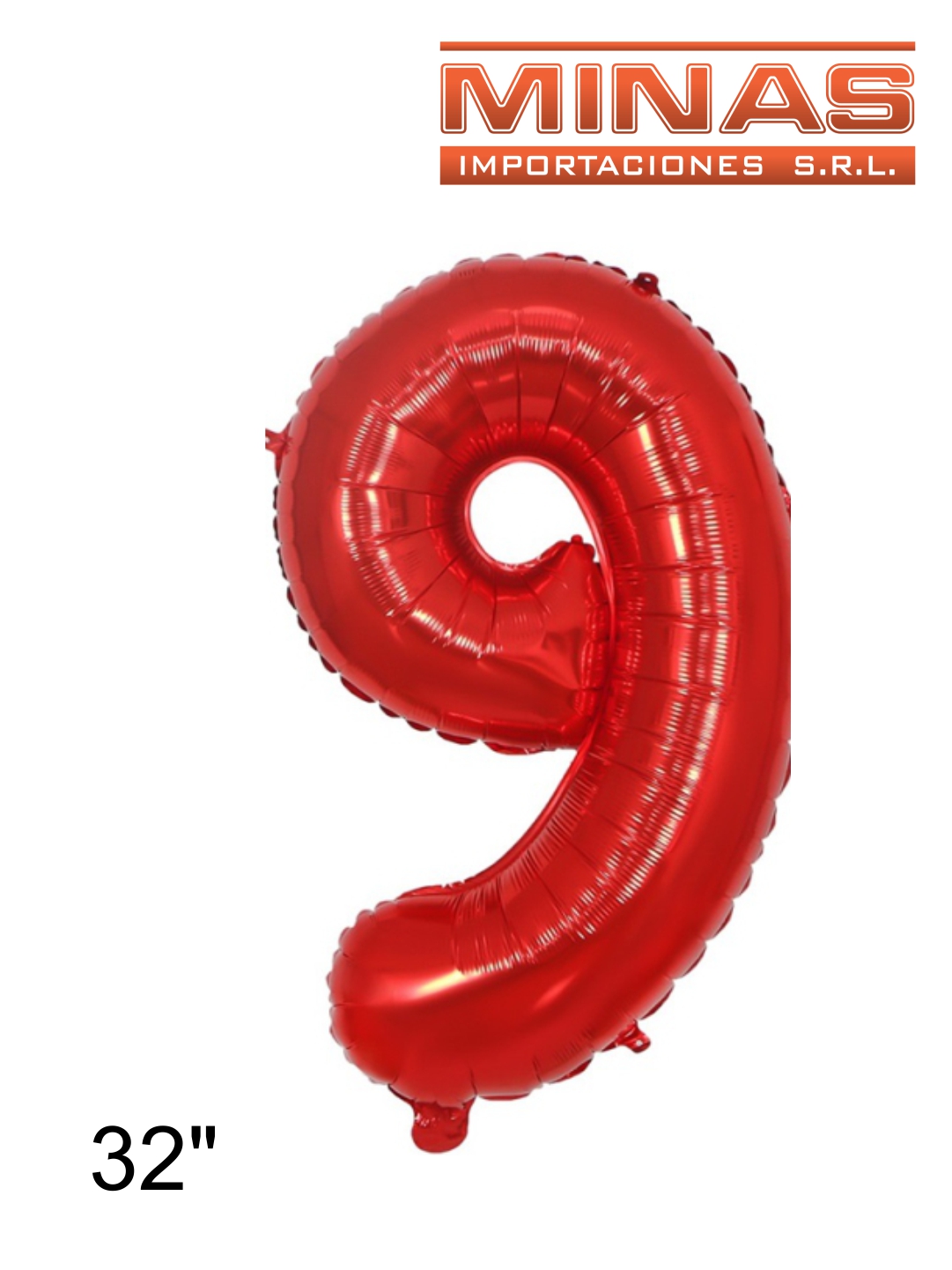 GLOBO Nº 9, DE 32" EN BOLSA,ROJO.