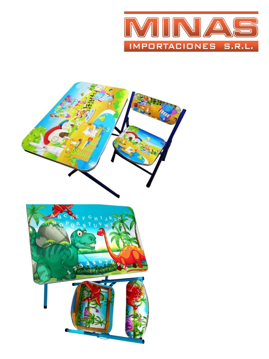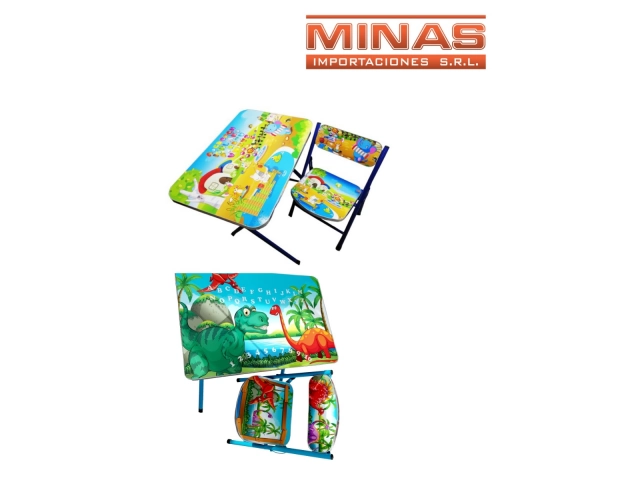 ESCRITORIO 60 CM X 40 CM + SILLITA , DINOS CON ABECEDARIO Y Nº.