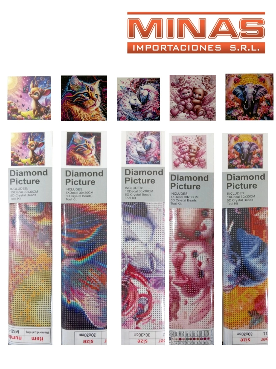 PINTURA CON DIAMANTE 5 D, LAMINA DE 30 CM X 30 CM, VARIOS DISEÑOS.