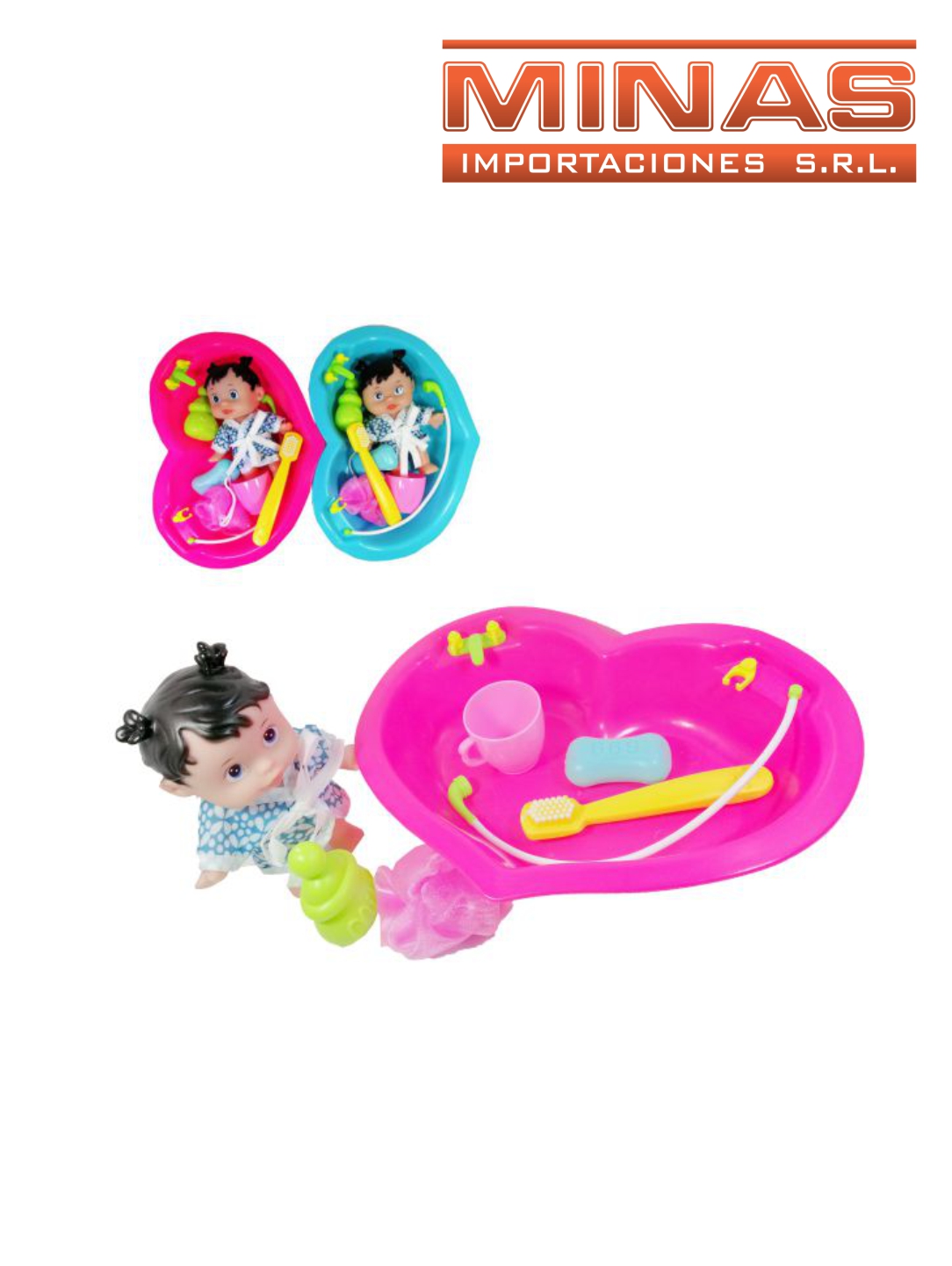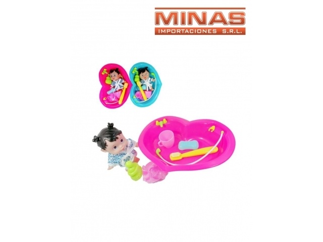 BAÑITO CORAZON + MUÑECA CON BATA + 5 ACC.