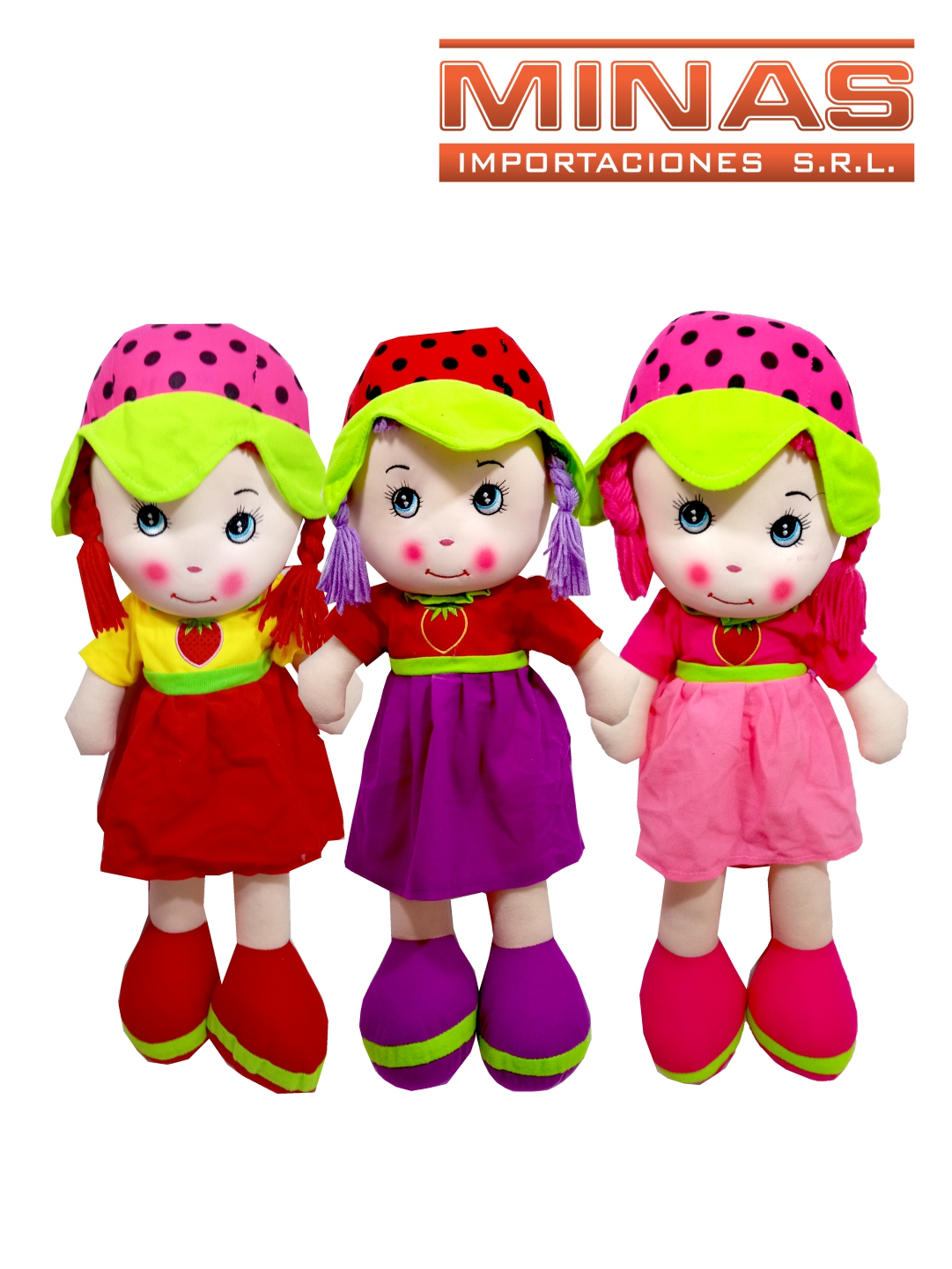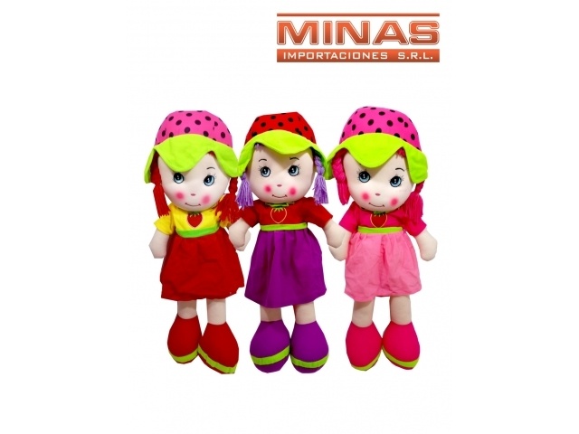 MUÑECA DE TRAPO DE 62 CM, 3 COLORES.