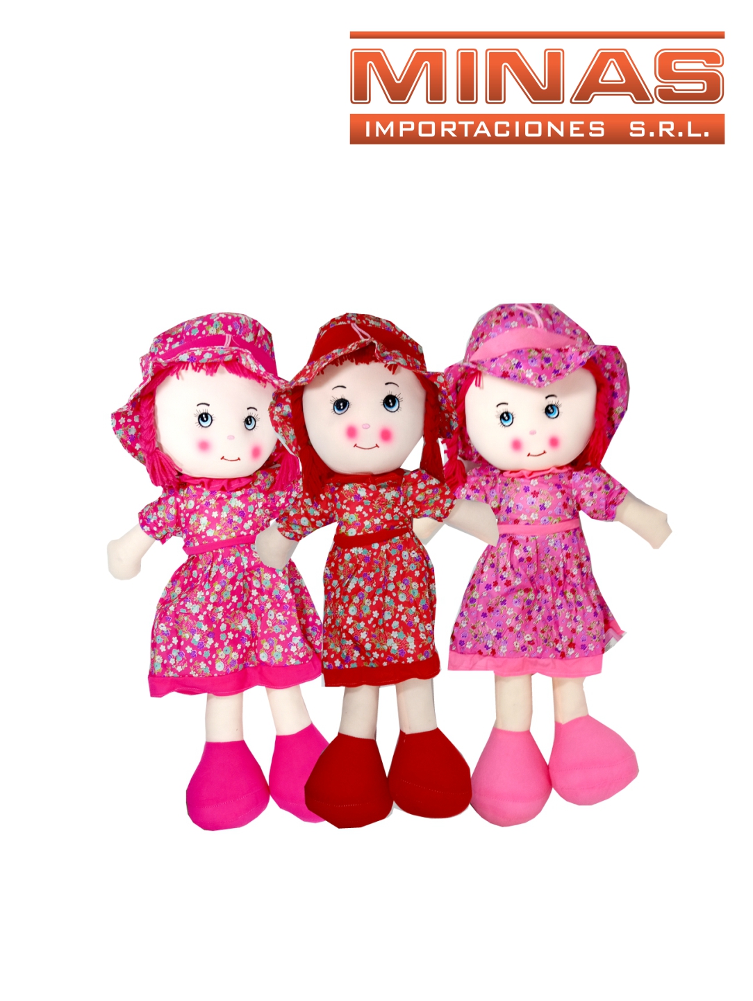 MUÑECA DE TRAPO DE 72 CM, 3 COLORES.