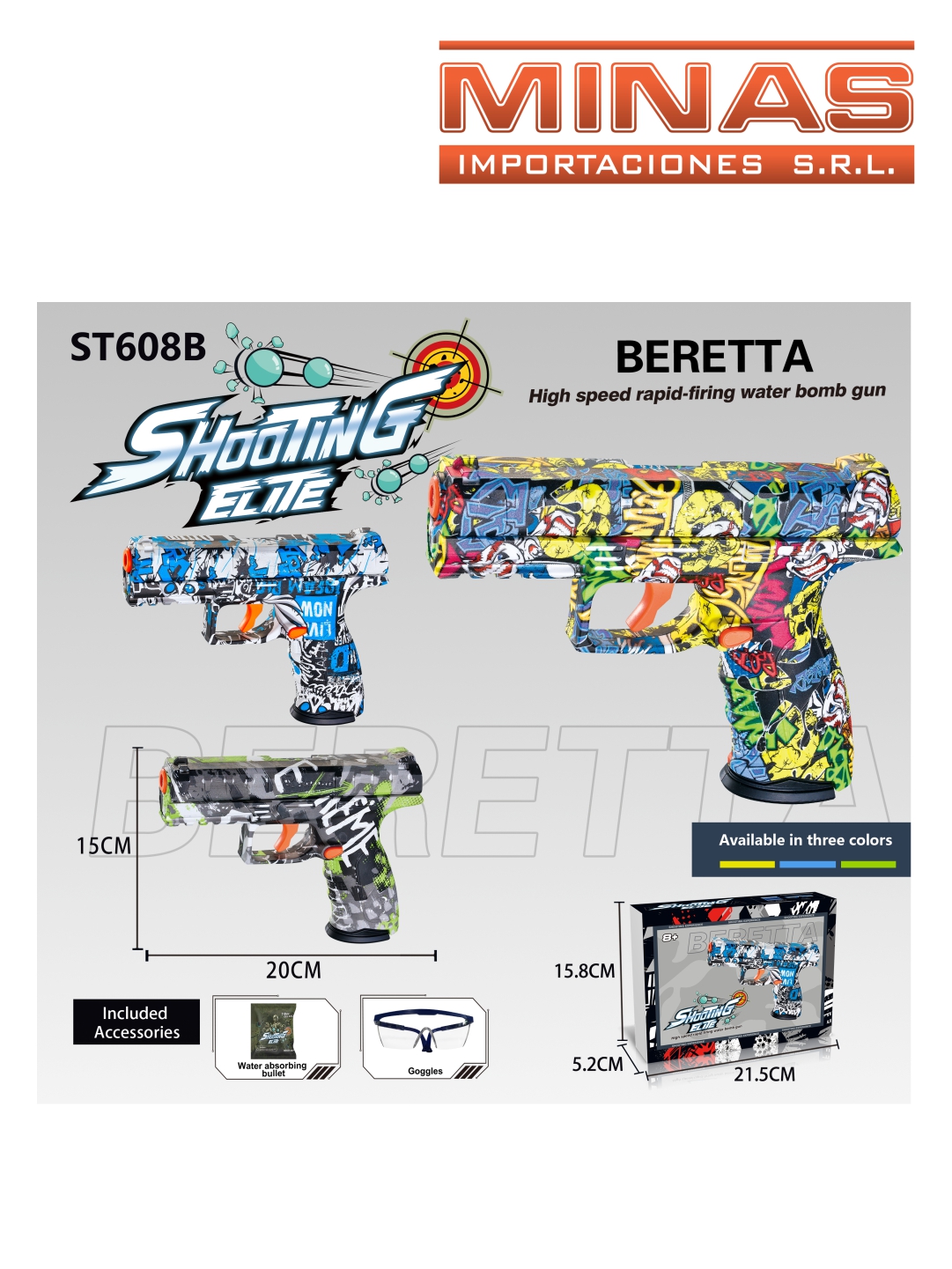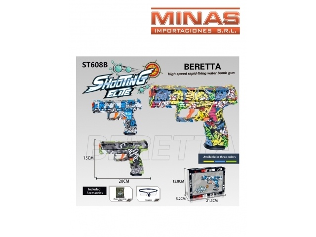 ARMA BERETTA LANZA ORBITS X 20 CM + 5.000 ORBITS + GAFAS, 2 COLORES