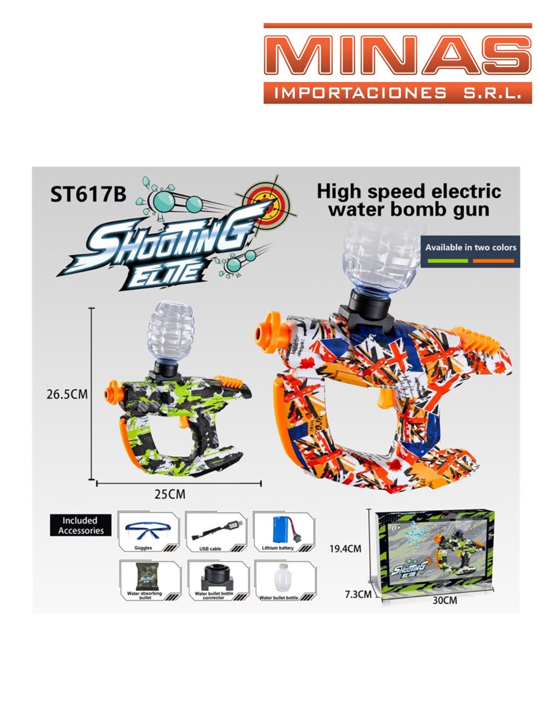 ARMA SPACE RECARGABLE LANZA ORBITS X 25 CM + 5.000 ORBITS + GAFAS, 2 COLORES.