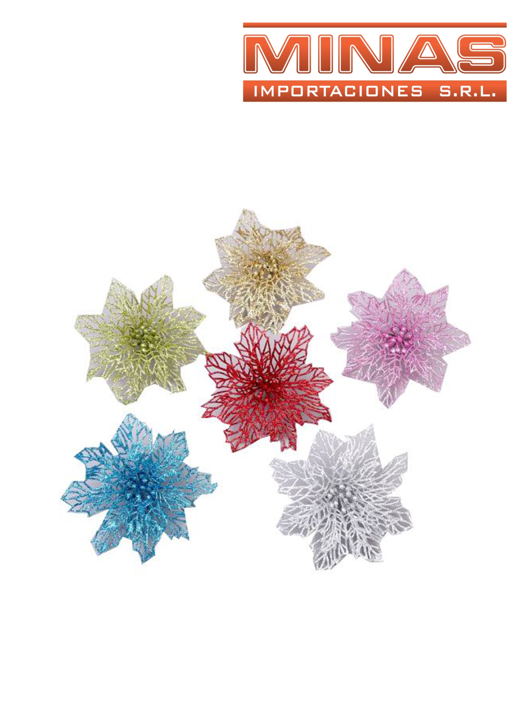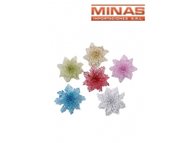 FLORES NAVIDEÑAS DE 12 CM X 6 UND, SURTIDAS.