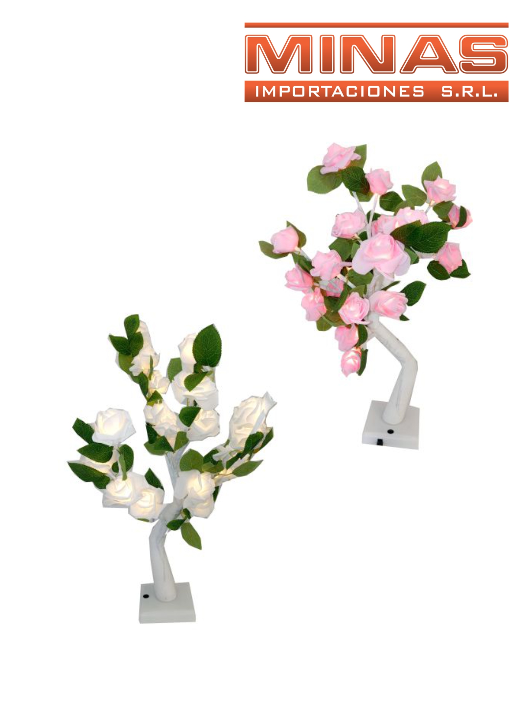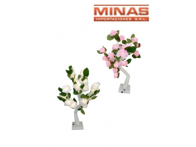 ROSAL DE 20 FLORES LUMINOSAS X 55 CM, ROSADO O BLANCO.