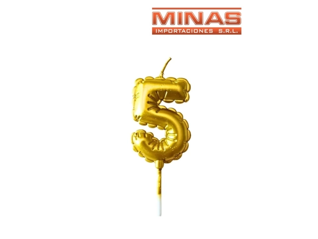 VELA Nº 5 EN FORMA DE GLOBO, DORADO.