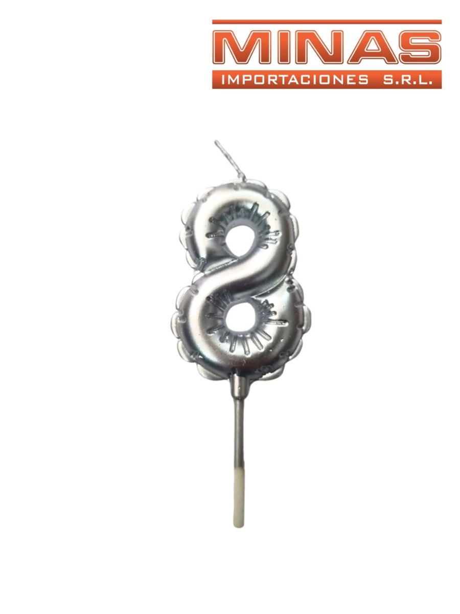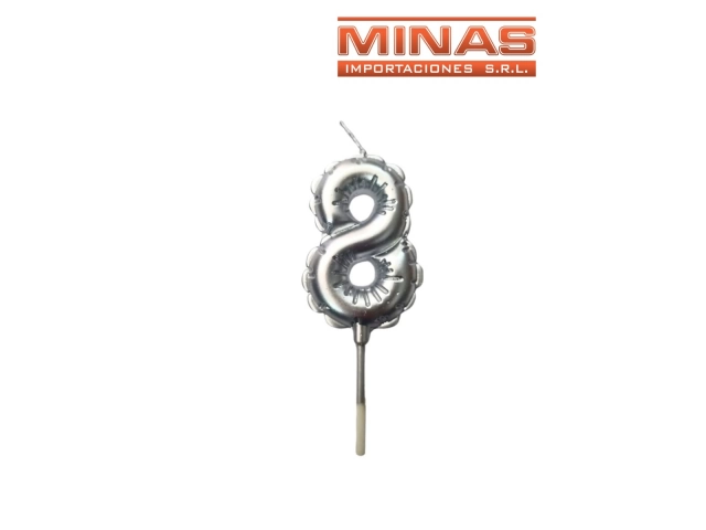 VELA Nº 8 EN FORMA DE GLOBO, PLATEADO.
