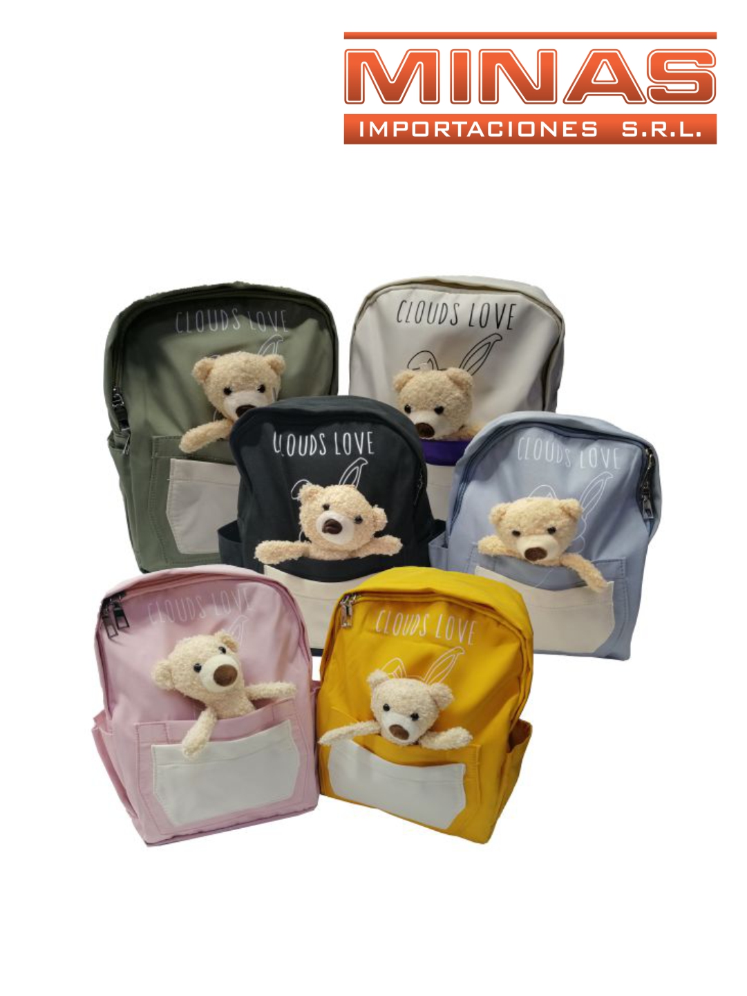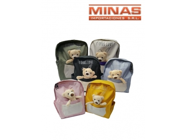 MOCHILA CON OSITO 6 COLORES 33x 26CM