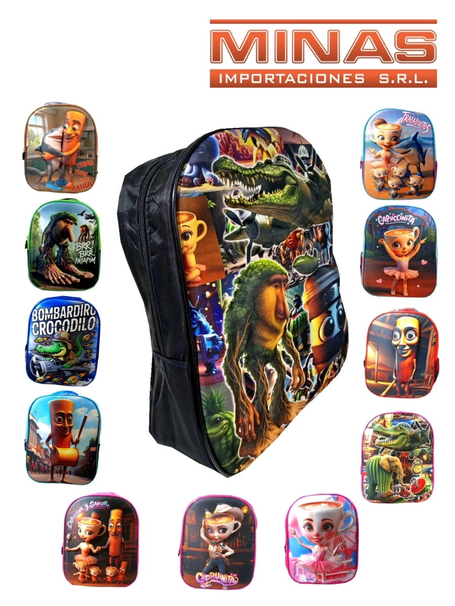 MOCHILA EN RELIEVE, 1 CIERRE,32 CM X 28 CM,BRAINROT, 12 DISEÑOS.